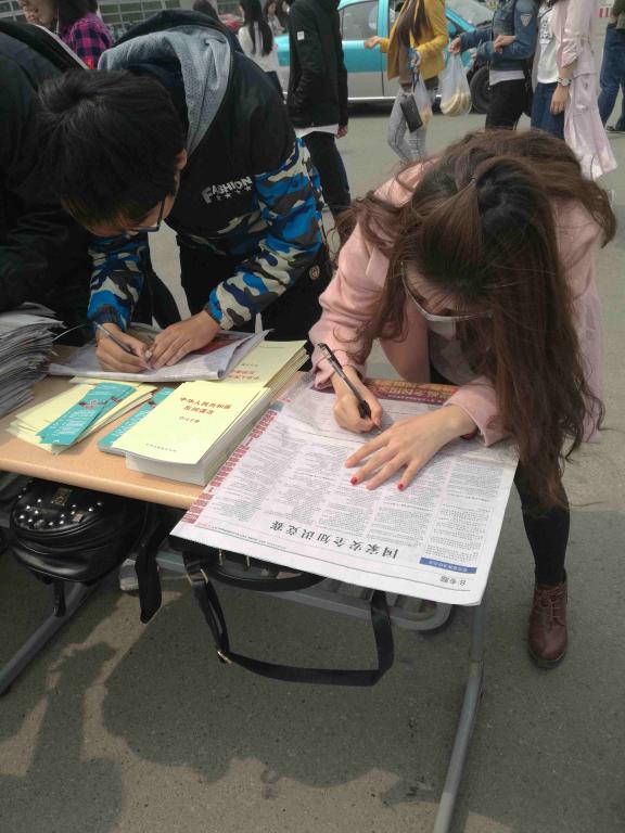 活动现场开展了维护国家安全签名、发放国家安全知识宣传品、国家安全知识宣讲等活动。广大同学积极参与,充分显示了当代大学生的爱国情怀。来自物理与材料科学学院的马爽同学说:“原来以为国家安全离我们大学生很遥远,通过今天的活动,加深了我对国家安全的认识,维护国家安全是每一个公民应尽的责任。”除了今天的现场活动外,保卫处还开展了国家安全知识有奖问答、微信宣传、横幅宣传、LED屏幕宣传等多种形式的国家安全知识宣传活动。