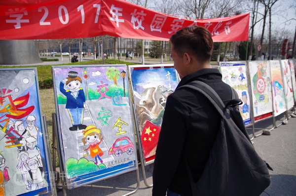 开幕式后,与会领导参观了各学院大学生安全工作协会创作的校园安全海报。海报紧扣大学生活,体现专业特色,充分展示了大学生对安全的关注和理解。海报除进行现场展示外,还将在各楼宇和微信平台进行展示。